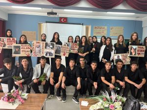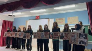 Elazığ’da bir lisede öğrenciler kadın cinayetlerine dikkat çekmek için bir etkinlik yaptılar.