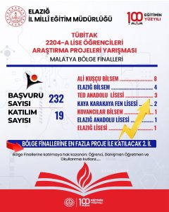 Elazığ, bu sonuçla Malatya Bölge Finalleri’nde yarışacak 8 il arasında en fazla proje ile katılacak olan 2. il olma başarısını da gösterdi.
