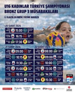 U16 Kadınlar Su Topu Türkiye Şampiyonası Bronz Grup 3 müsabakaları, 20-22 Şubat 2026 tarihleri arasında Elazığ’da başladı. Karşılaşmalar, Elazığ Olimpik Yüzme Havuzu’nda oynanıyor.