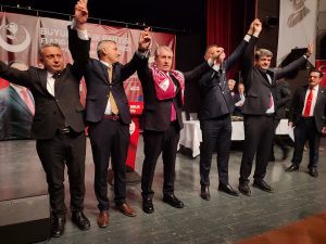 Büyük Birlik Partisi Genel Başkanı Mustafa Destici, prtisinin Elazığ İl Kongresine katılmak üzere Elazığ’a geldi.Kongrede konuşan Destici ülke ve Ortadoğu’daki savaş gündemine dair değerlendirmelerde bulundu. İsim vermeden çözüm süreci üzerinden DEM Parti’yi de eleştiren Destici:” Bu ülkenin kimliğini pasaportunu taşıyan hatta milletvekilliği yapan, farklı görevler yapan bu ülkenin ekmeğini yiyen birisi meydana indiğinde elinde Türk bayrağı değil de başka bir bölgenin bayrağını ya da terör örgütünün bayrağı varsa teröristlerin fotoğrafı varsa bu ne demektir Ben bu devleti tanımıyorum demektir. Bu al bayrağı eline almayan hiç kimseden bu millete bu devlete hayır gelmez bunlarla da barış falan olmaz”Dedi.