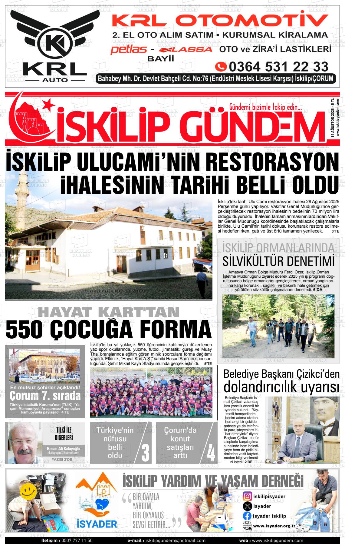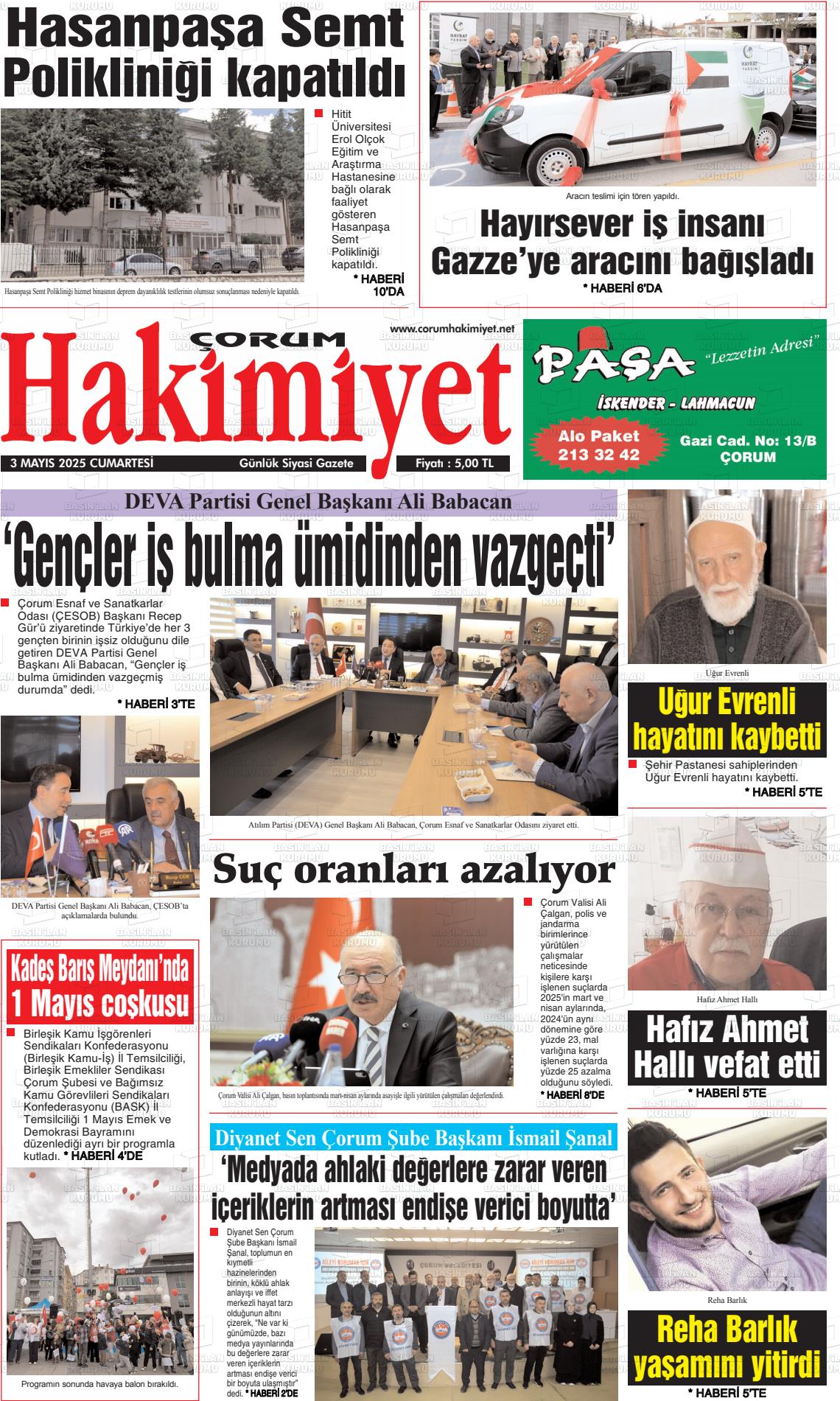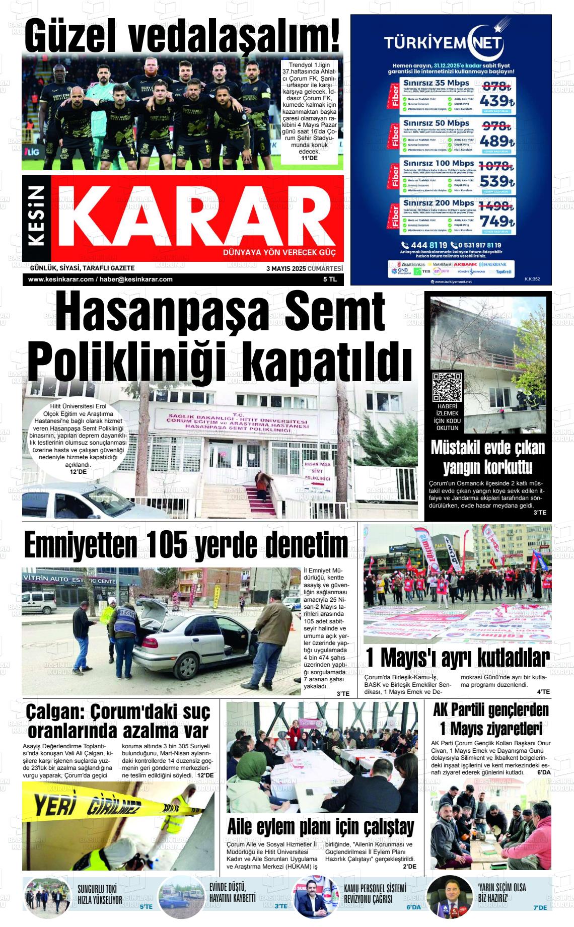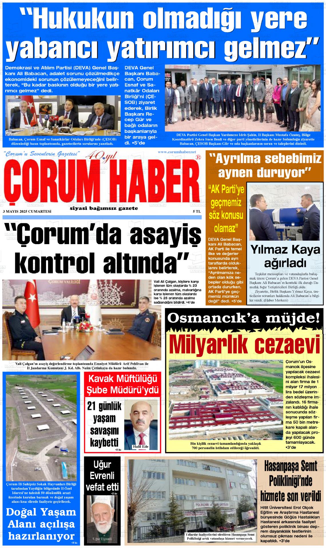 Çorum Yerel Gazeteleri 11 Aralık 2025, Perşembe Günü Manşeti
