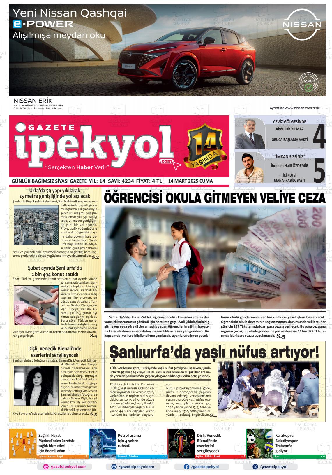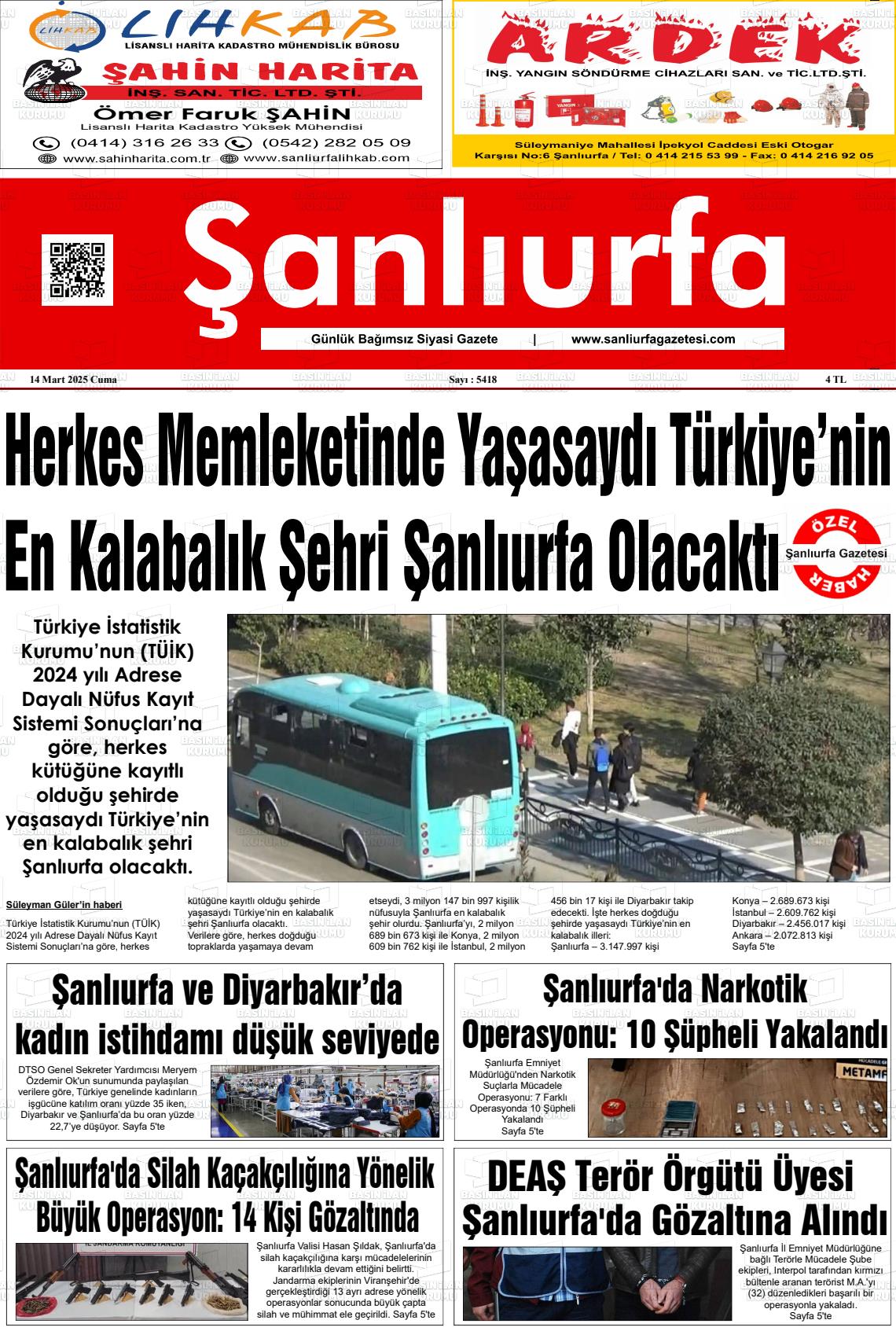 Şanlıurfa Yerel Gazeteleri 11 Aralık 2025, Perşembe Günü Manşeti