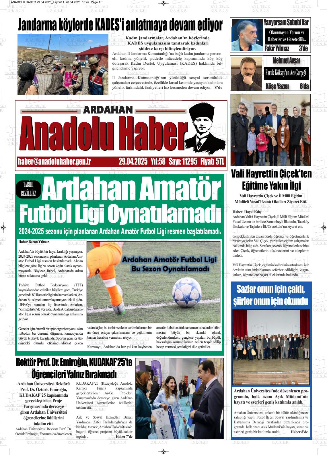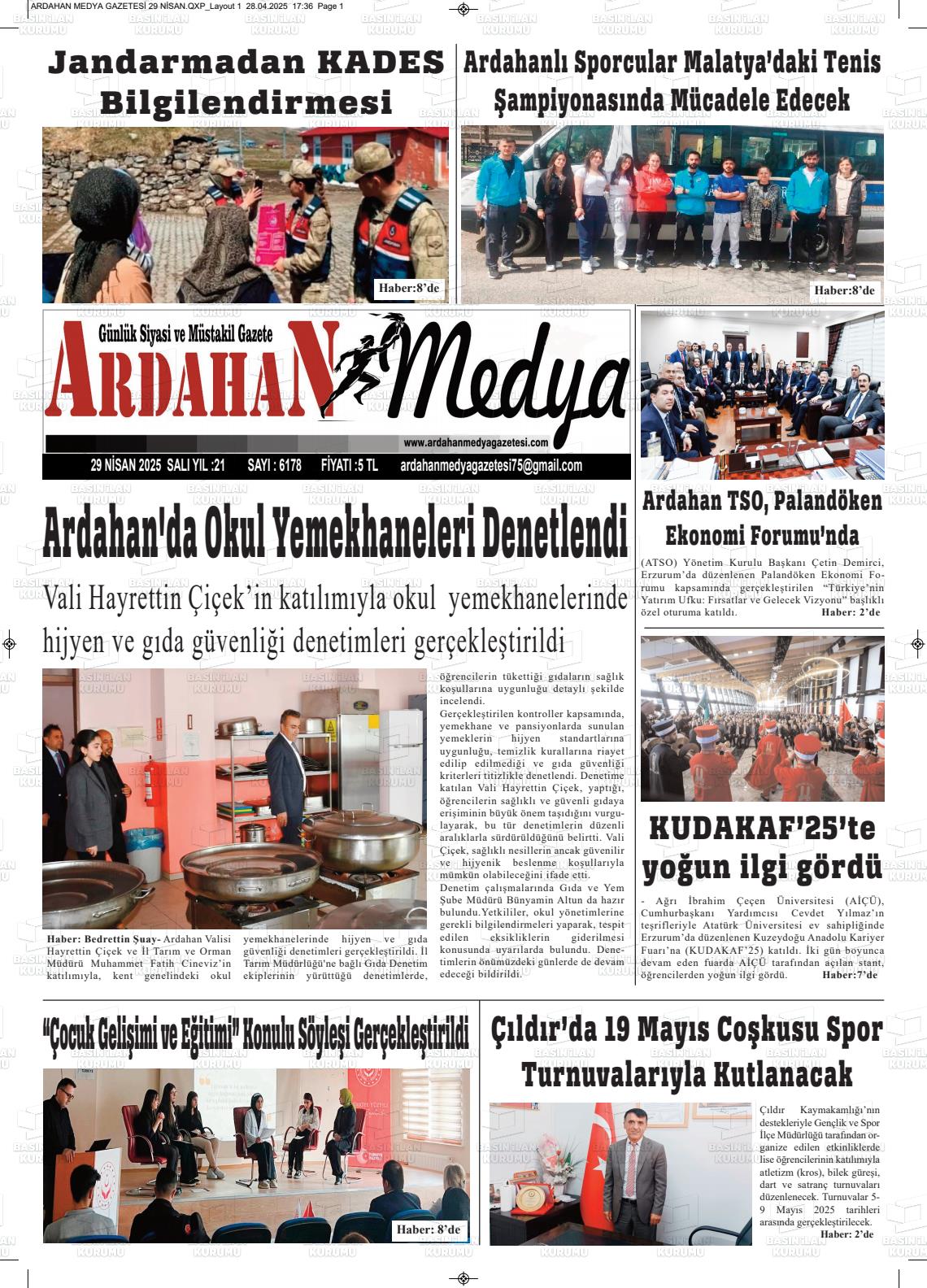 Ardahan Yerel Gazeteleri 11 Aralık 2025, Perşembe Günü Manşeti