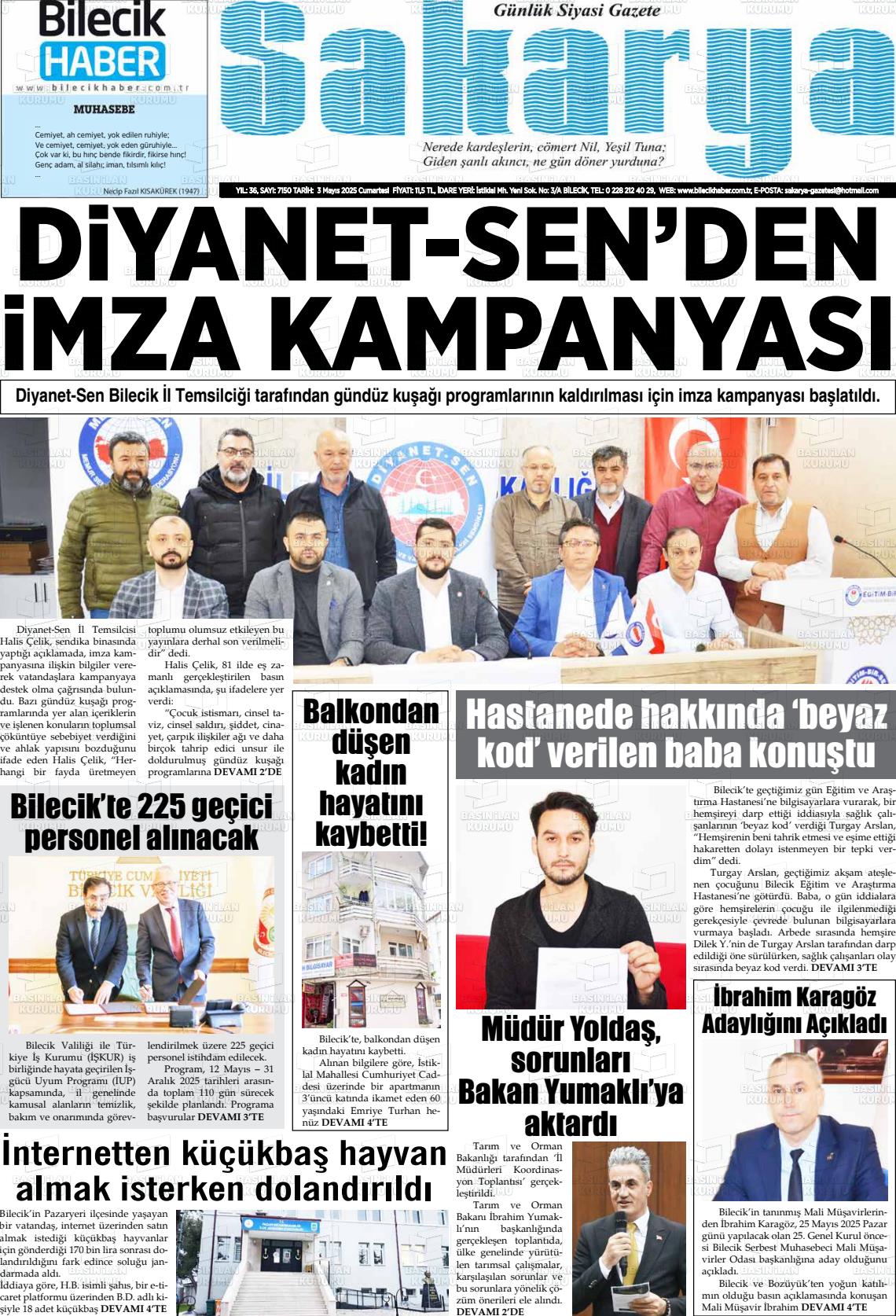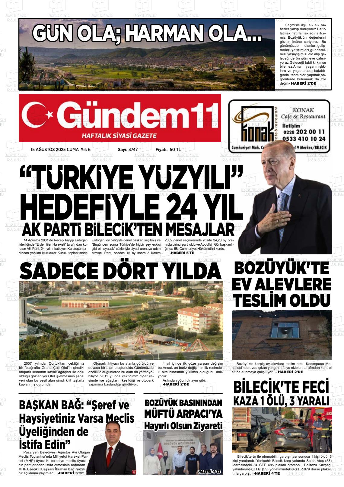 Bİlecİk Yerel Gazeteleri 11 Aralık 2025, Perşembe Günü Manşeti