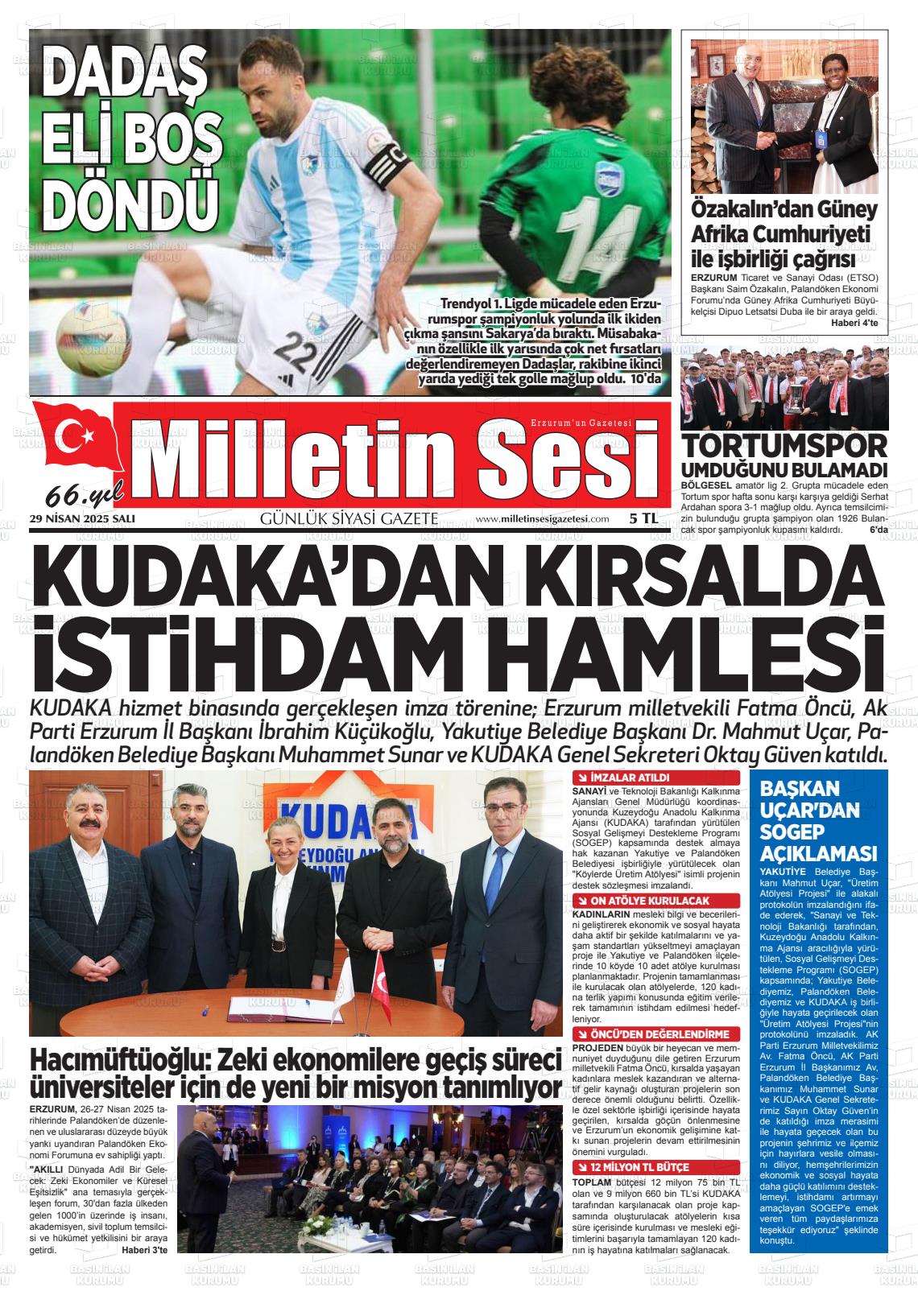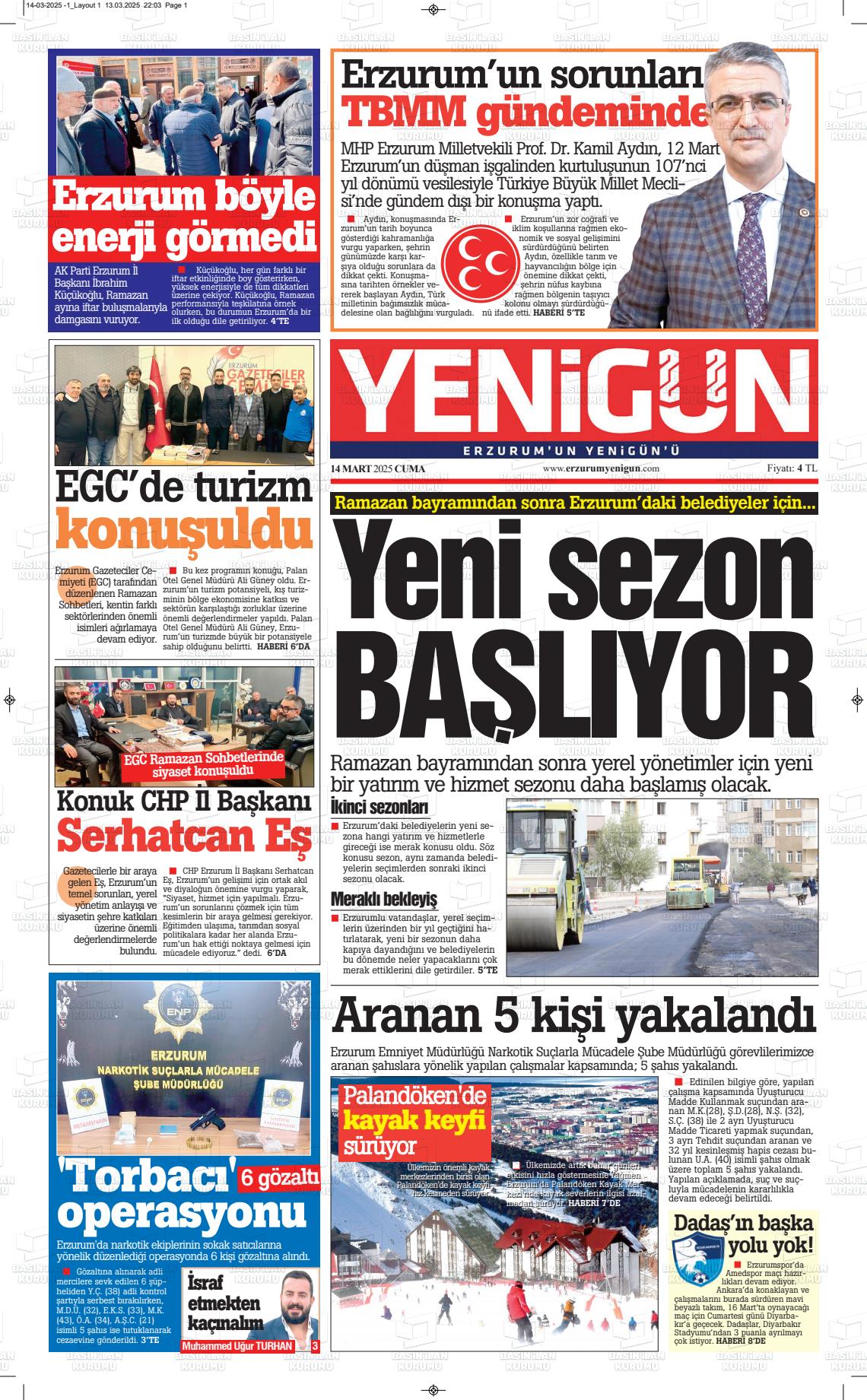 Erzurum Yerel Gazeteleri 11 Aralık 2025, Perşembe Günü Manşeti