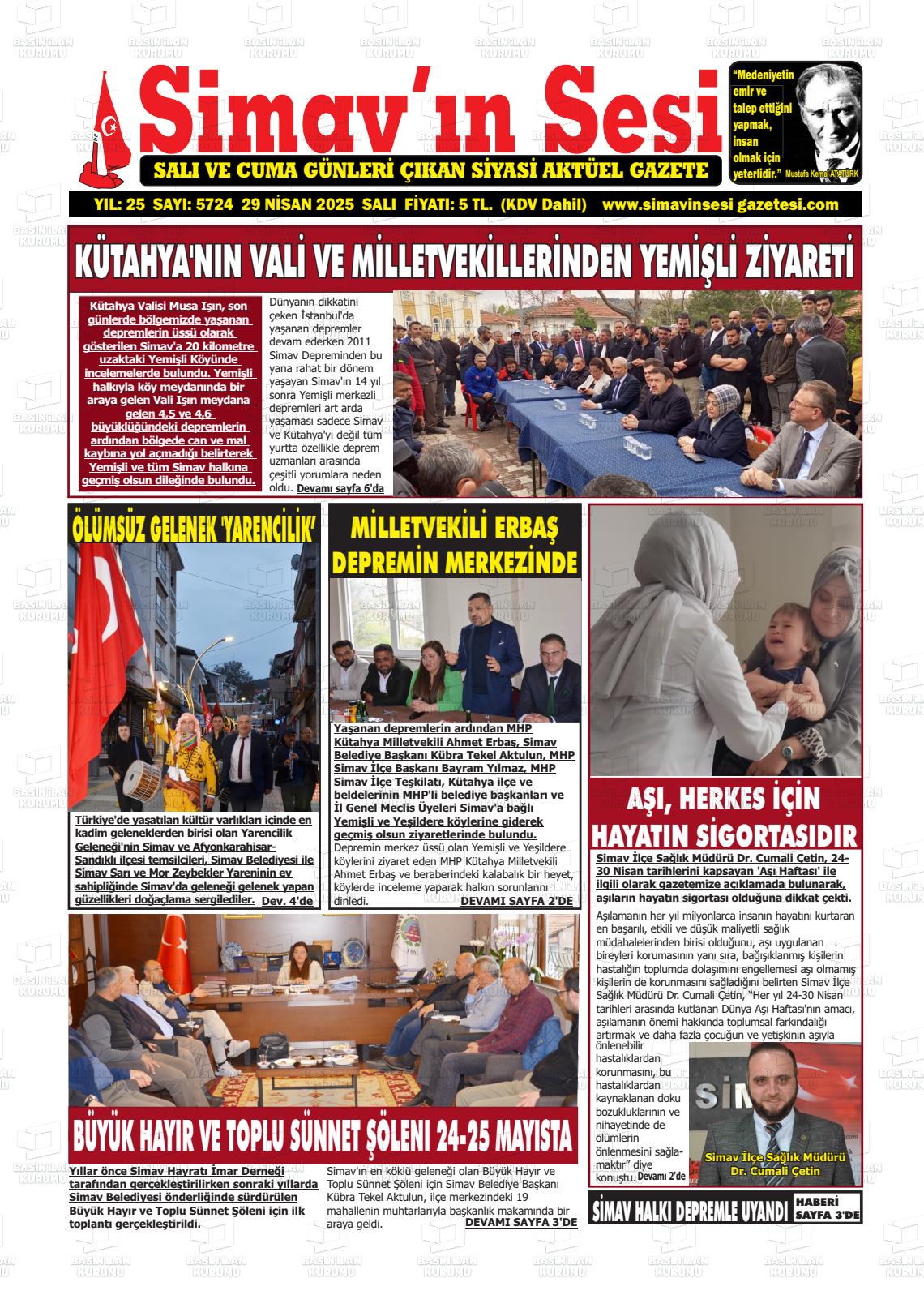 Kütahya Yerel Gazeteleri 11 Aralık 2025, Perşembe Günü Manşeti