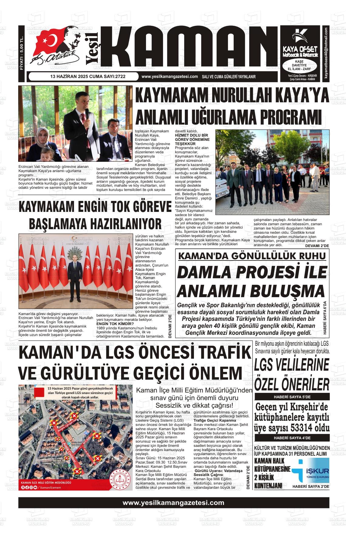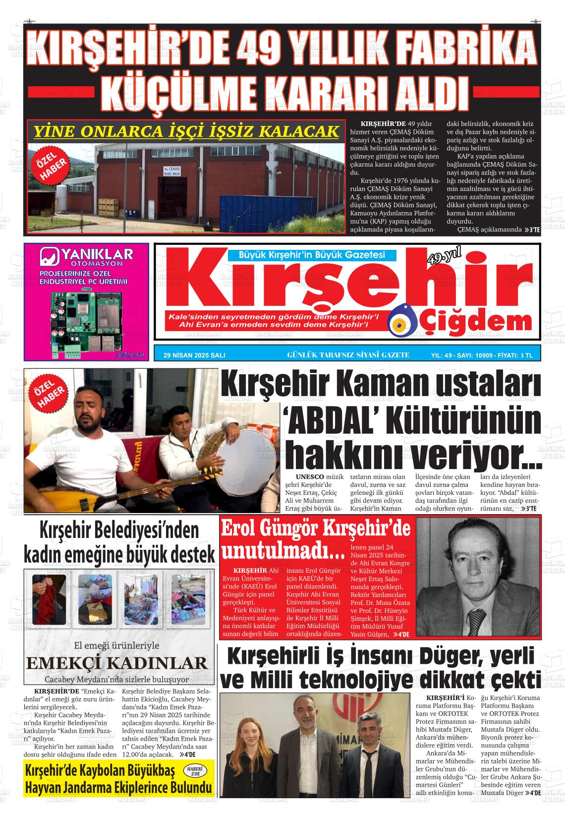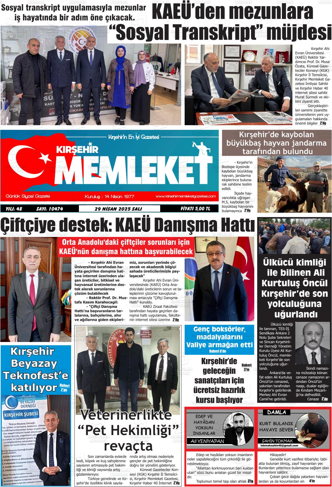 Kırşehİr Yerel Gazeteleri 17 Nisan 2026, Cuma Günü Manşeti