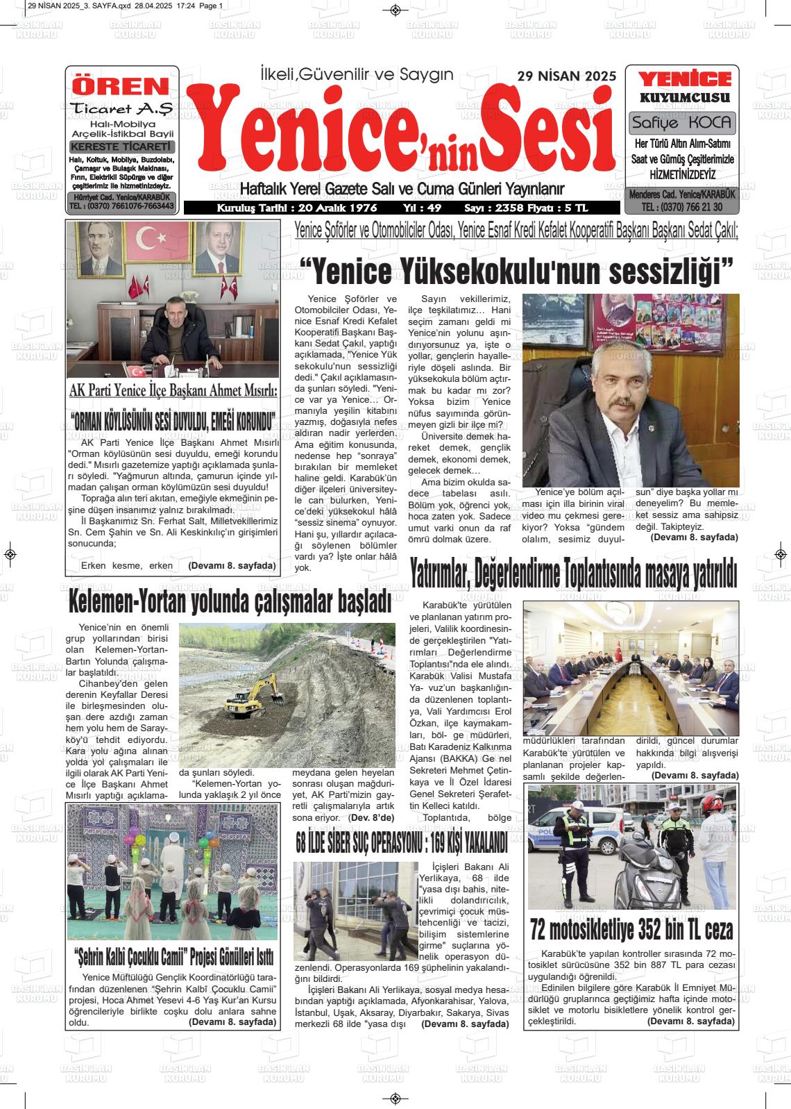 Karabük Yerel Gazeteleri 11 Aralık 2025, Perşembe Günü Manşeti